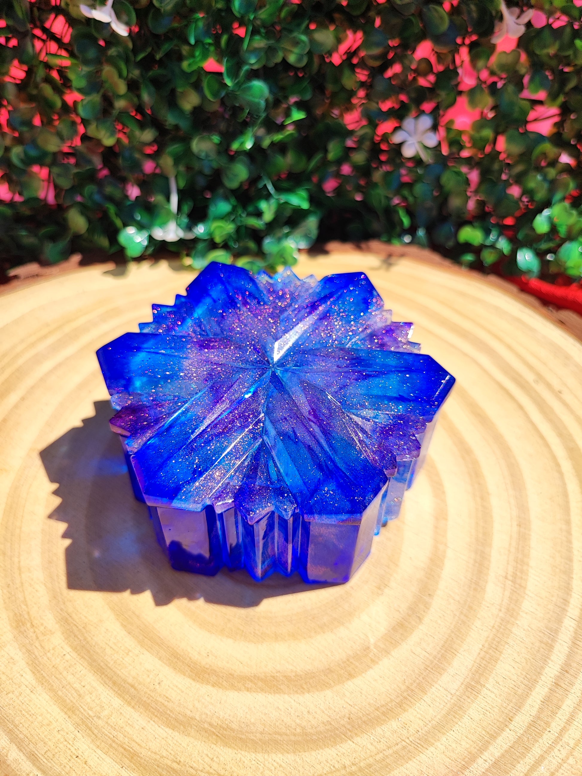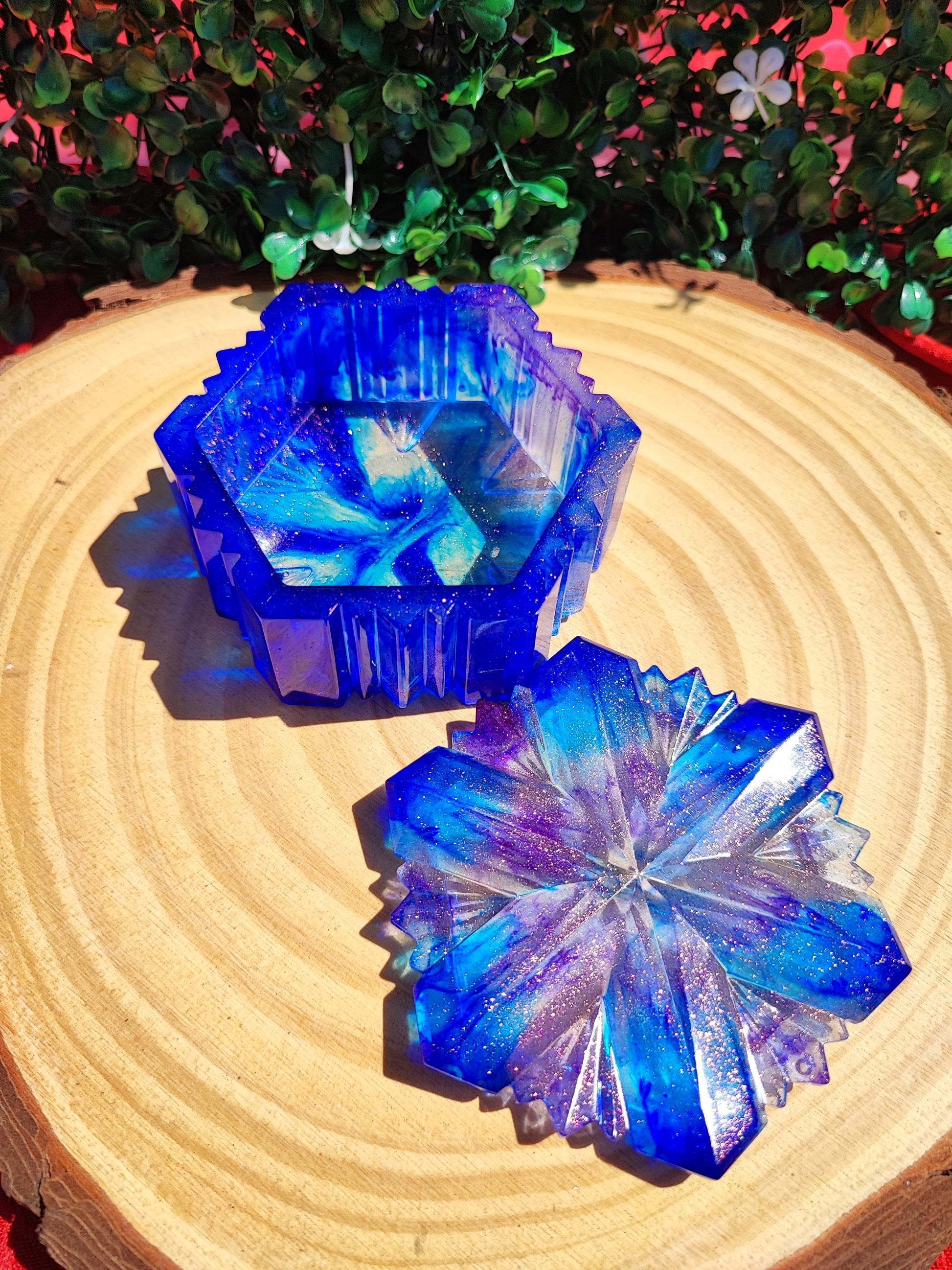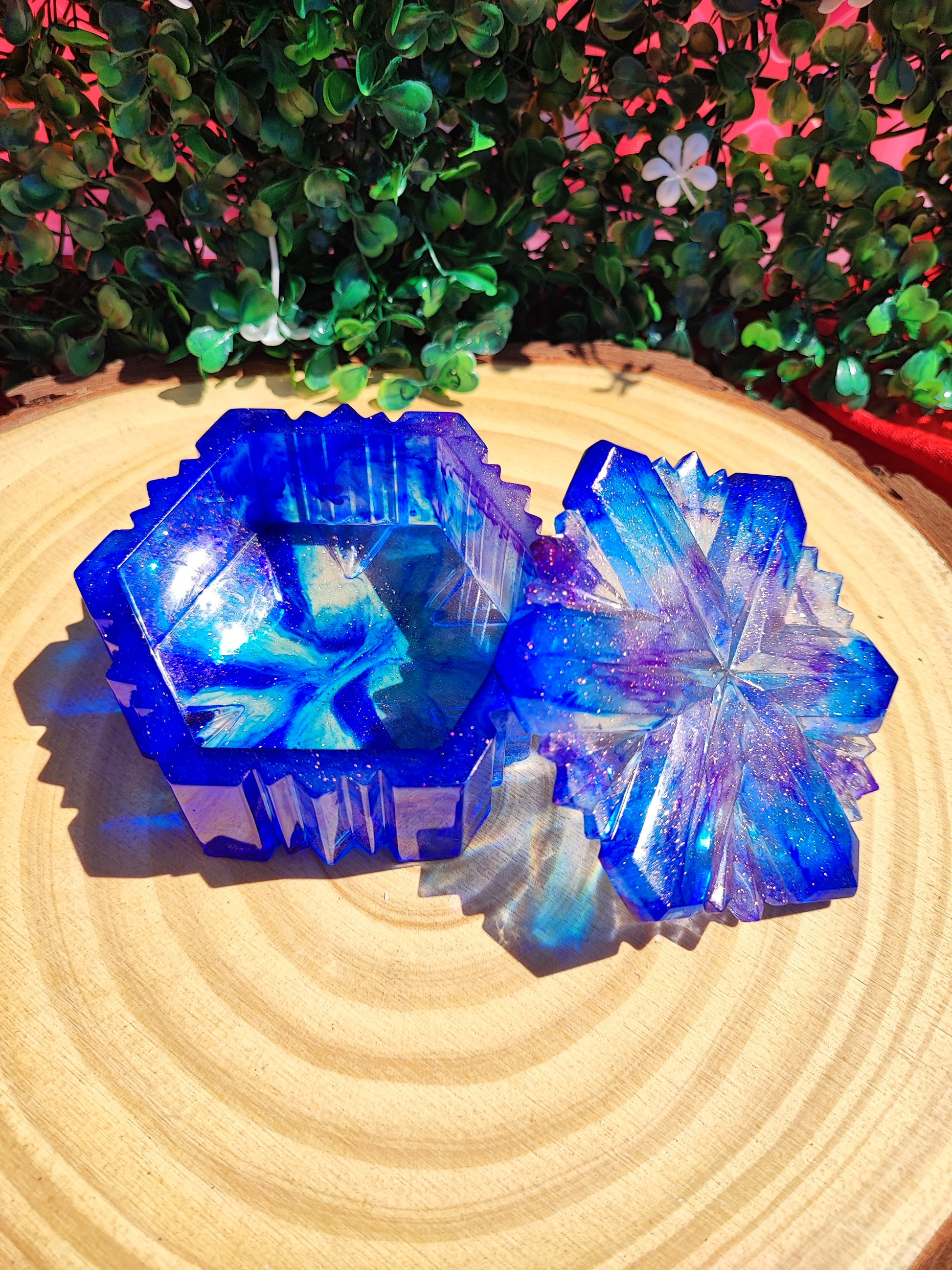 Boîtes “Flocon” en résine pour ajouter une touche de magie à votre espace. Le couvercle s’ajuste parfaitement à la base, ornée d'un motif rappelant les flocons de neige.