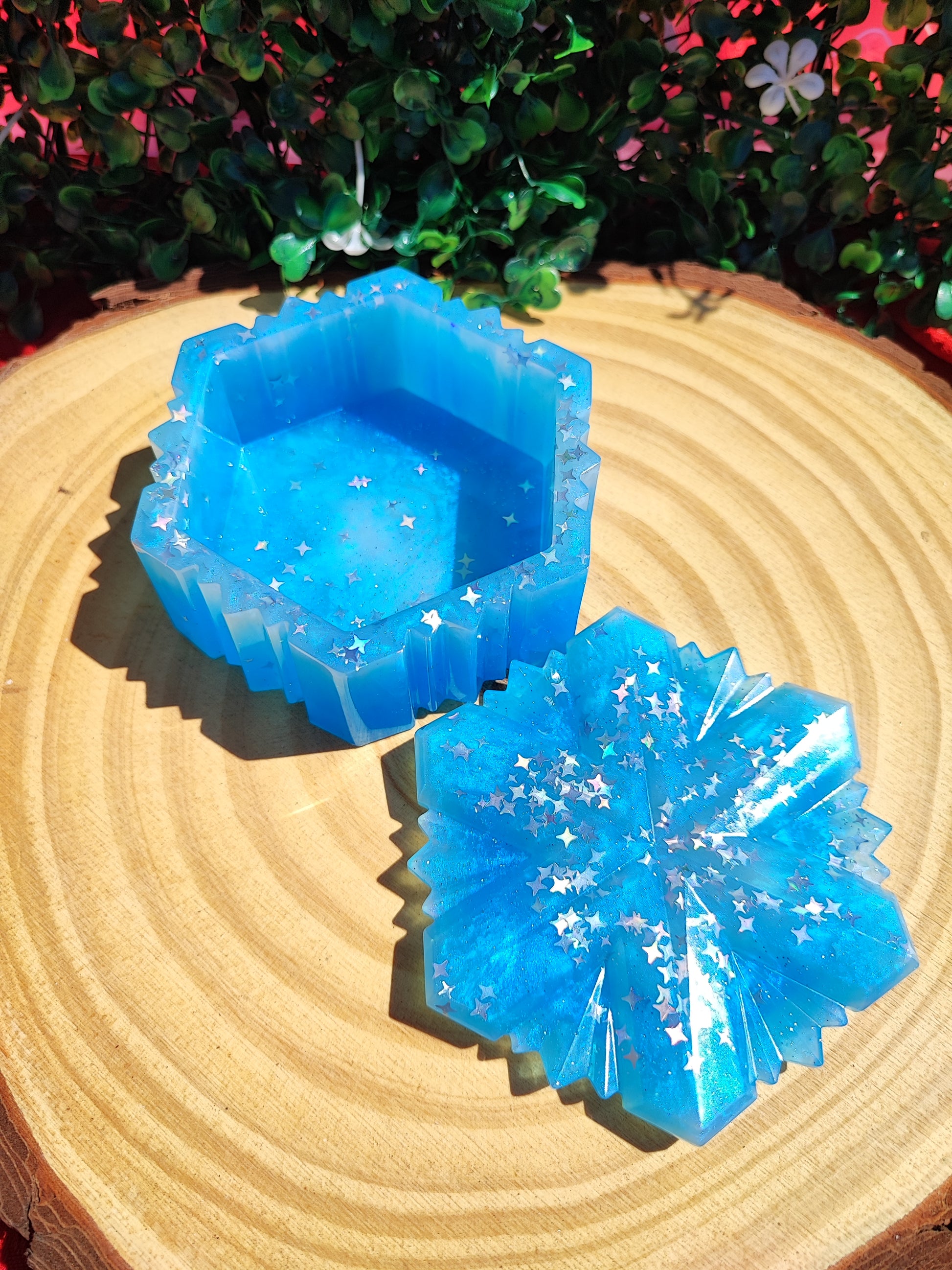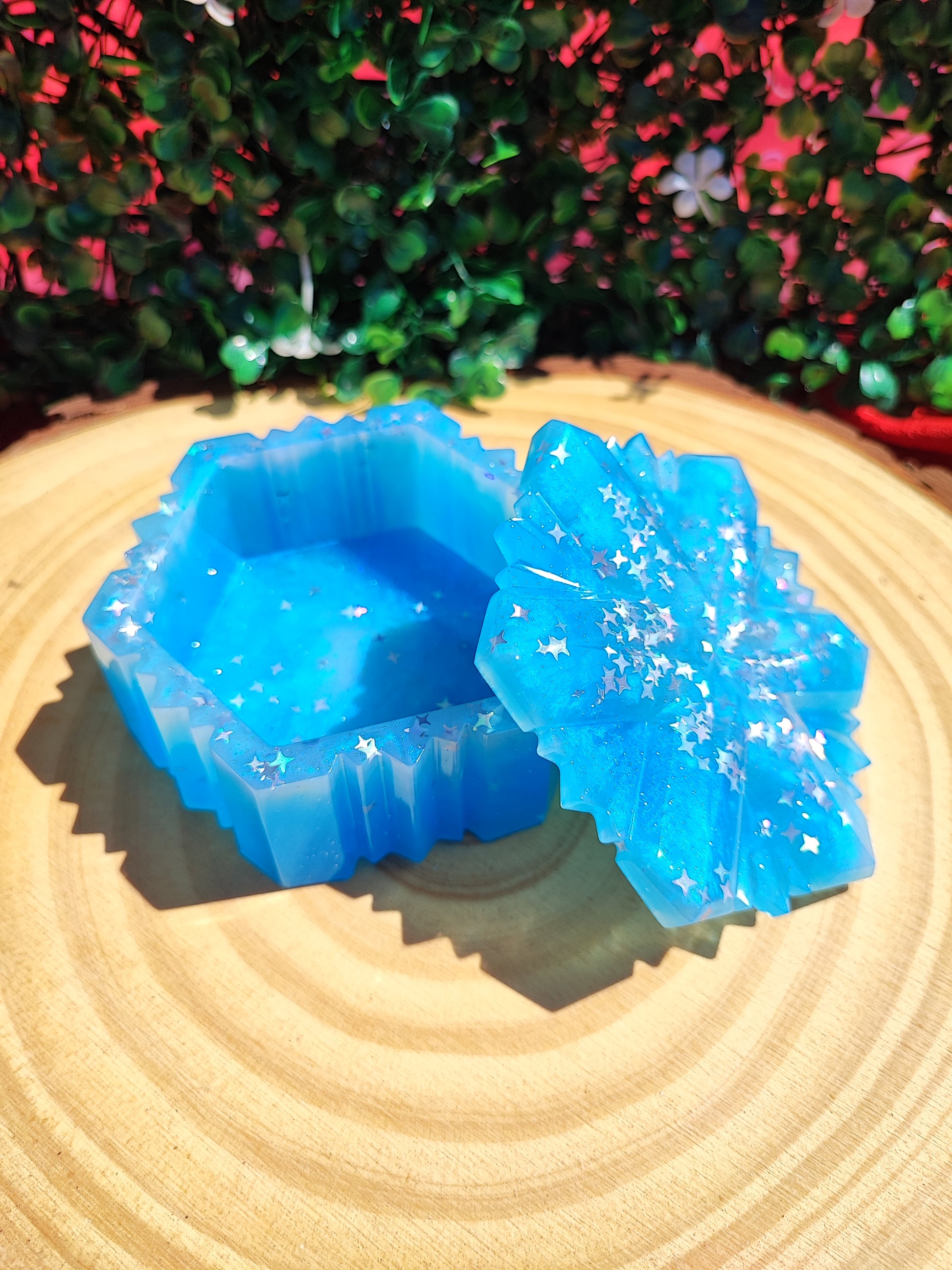 Boîtes “Flocon” en résine pour ajouter une touche de magie à votre espace. Le couvercle s’ajuste parfaitement à la base, ornée d'un motif rappelant les flocons de neige.